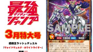 「最強ジャンプ(2026年3月号)」の予約がAmazon(アマゾン)で開始中!!付属カードは『ヴォイドヴェルグ・ホワイトライダー』!!サーチ効果を合わせ持つ名称変更持ちですね。2026/2/4発売!!【遊戯王ラッシュデュエル】