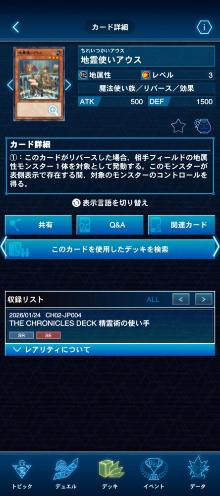 - CH02-JP004『地霊使いアウス』(新規イラスト) スーパーレア ※シークレットレア仕様あり