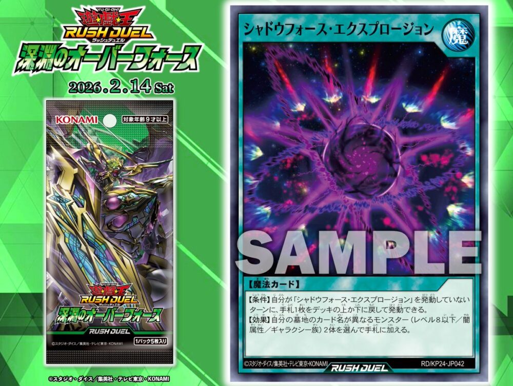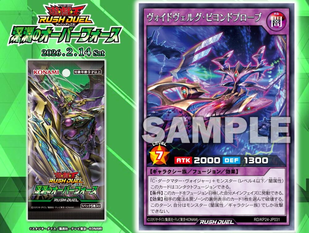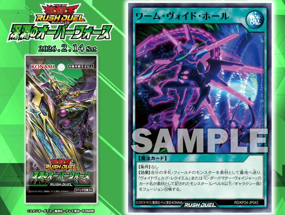 2026/2/14に発売される遊戯王ラッシュデュエルの基本パック「深淵のオーバーフォース」収録の「ヴォイドヴェルグ」関連カード5種が公開されました。