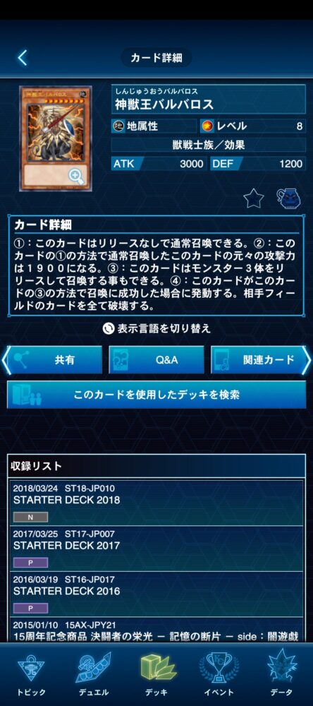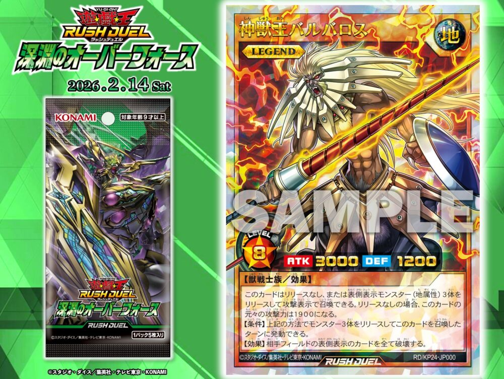 2026/2/14に発売される遊戯王ラッシュデュエルの基本パック「深淵のオーバーフォース」収録の『神獣王バルバロス(しんじゅうおう)』が公開されました。