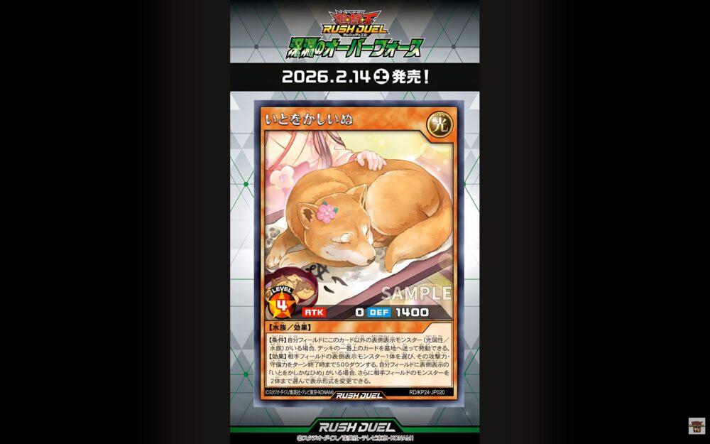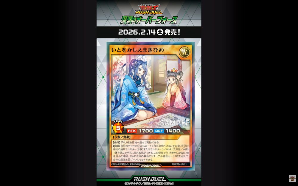 2026/2/14に発売される遊戯王ラッシュデュエルの基本パック「深淵のオーバーフォース」収録の「いとをかし」関連カード2種が公開されました。