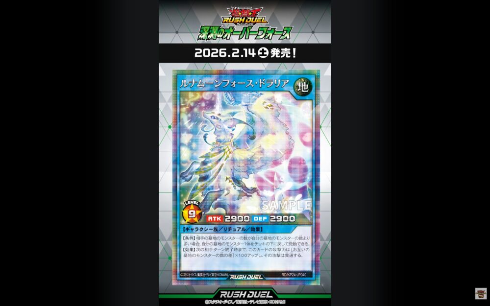 2026/2/14に発売される遊戯王ラッシュデュエルの基本パック「深淵のオーバーフォース」収録のイラスト違いカード6種が公開されました。