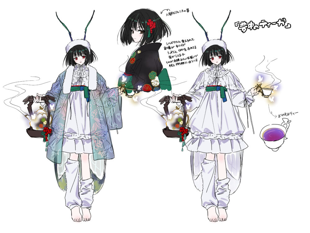 カードイラストでは気付かなかったのですが、ティーポットに菊花紋がデザインされていたというのも元が和装の名残りとなっている様です。