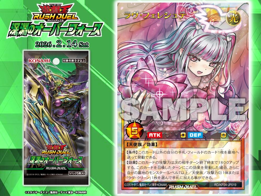 2026/2/14に発売の遊戯王ラッシュデュエルの基本パック「深淵のオーバーフォース」に収録される『ラヴ・フェレシュテ』の設定画が公開されました。