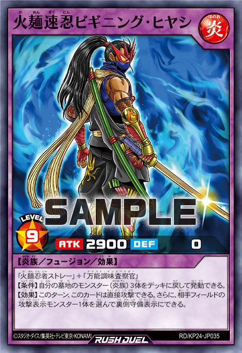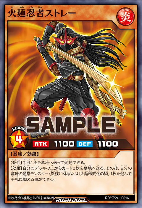 2026/2/14に発売の遊戯王ラッシュデュエルの基本パック「深淵のオーバーフォース」に収録される火麺(かめん)」モンスター2種の設定画が公開されました。