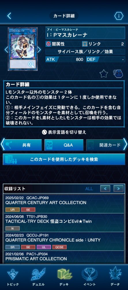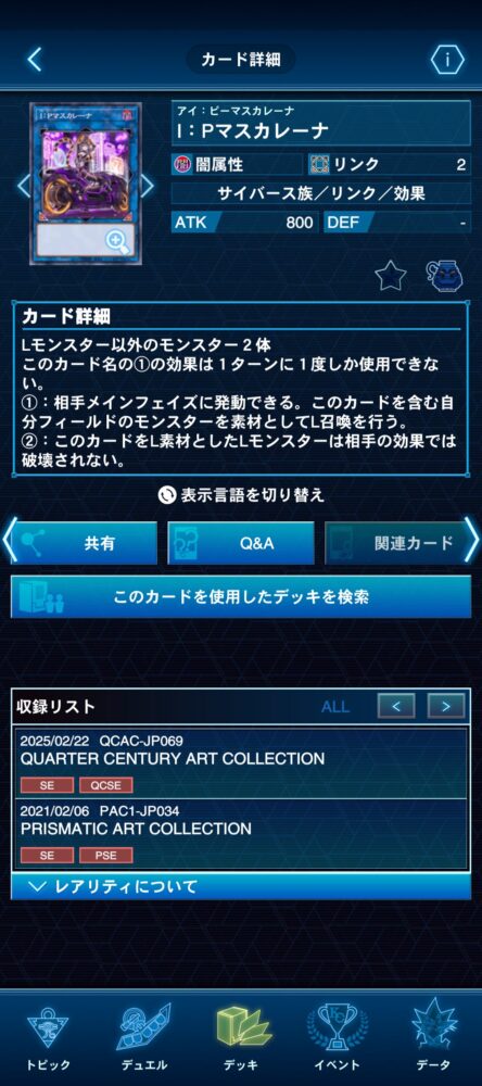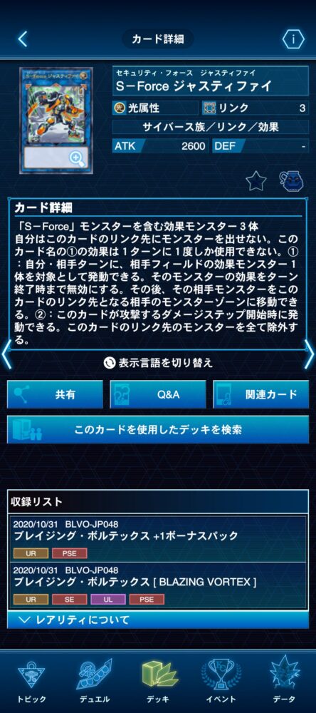 先にマスターデュエルで実装されていたので収録されるとは思っていましたが、まさかアニメに無関係な完全新規カードが実装は驚きました……。
