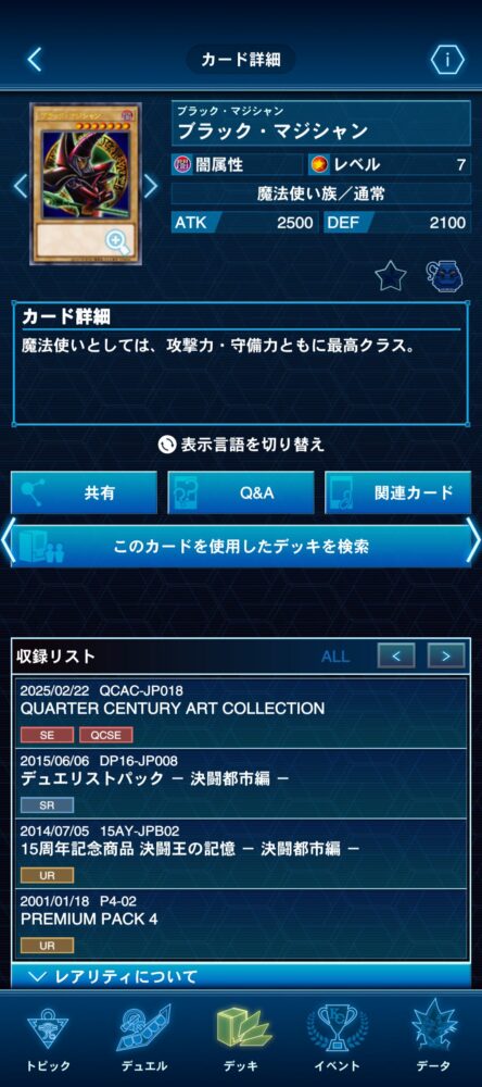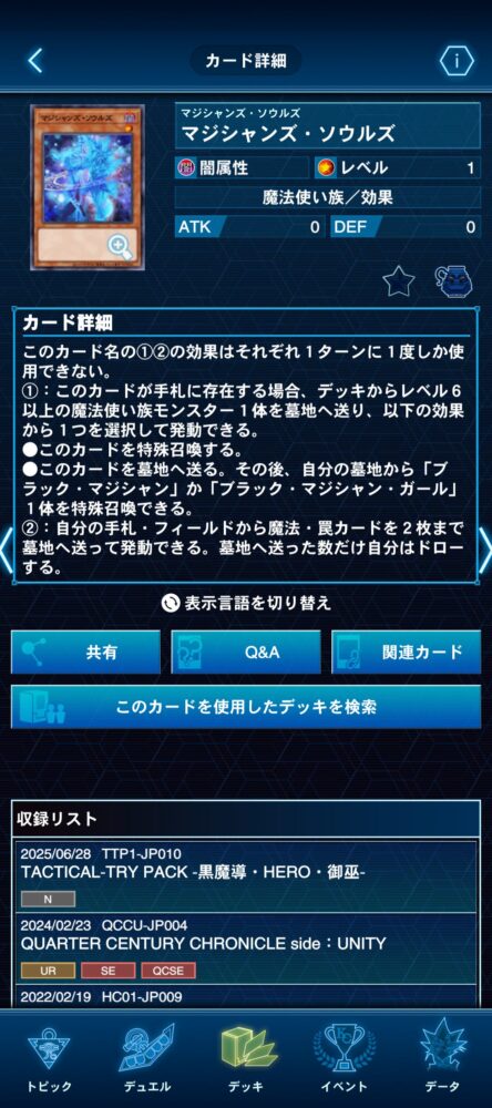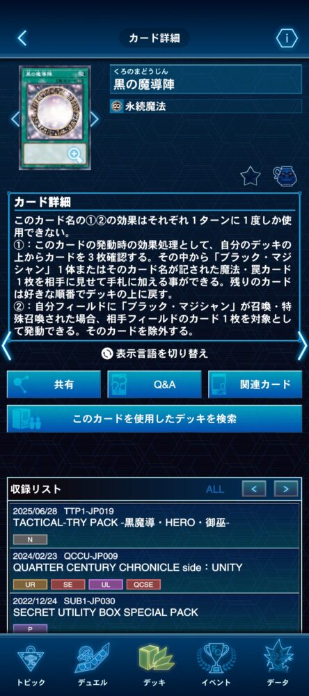 そして何より、この追加効果のお陰で『ブラック・マジシャン』のカード名がテキストに含まれているため、サーチが非常に容易。