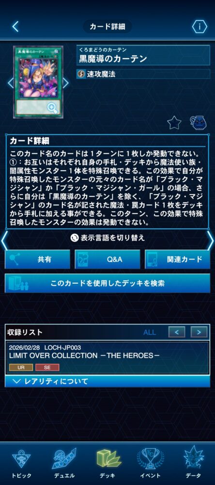 対となる「リミットオーバーコレクション-THE HEROES-(LIMIT OVER COLLECTION)」で最後に公開されたのが『黒魔術のカーテン』のリメイクでしたし、海馬の使用した展開効果を持つ魔法カードから選ばれたのかもしれません。