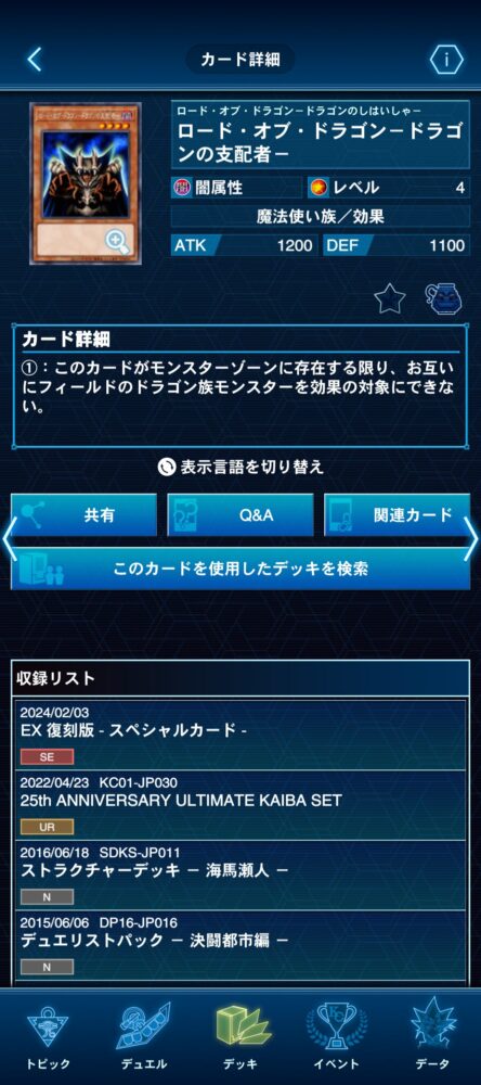 ただし、『ロード・オブ・ドラゴン-ドラゴンの支配者-』以外の魔法使い族でも発動条件を満たせる上に、手札でなくデッキから呼び出せる様になっていますね!!