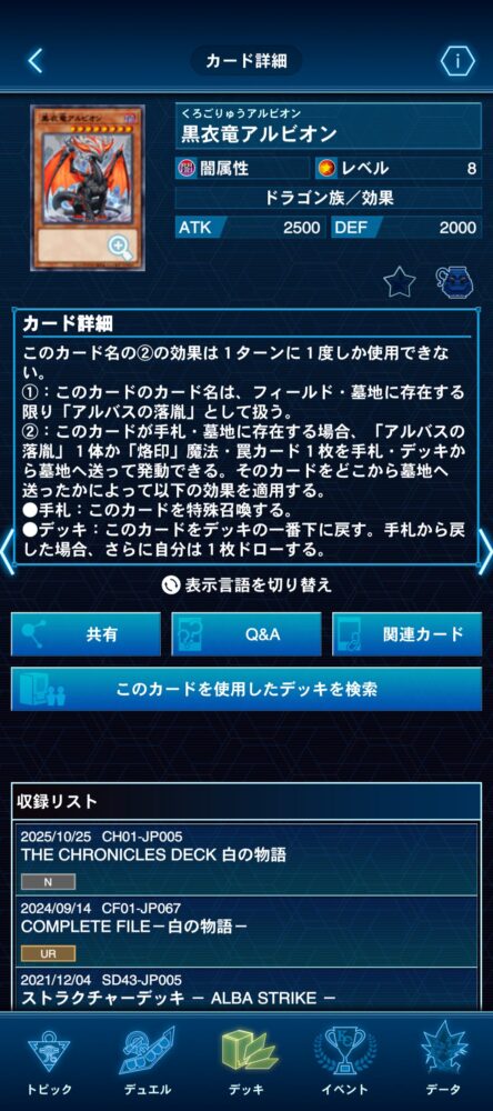 それに、『黒衣竜アルビオン』を特殊召喚した場合は追加で呼び出せる先が『アルバスの落胤』(『白き竜の落胤』)となるため、そのまま相手モンスターを素材にした融合召喚や「エクレシア」のリクルートにまで繋げられますね。