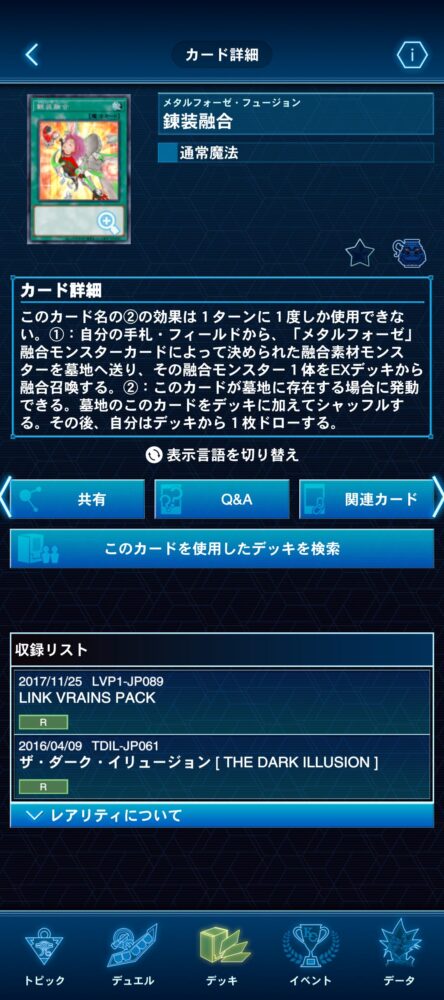 また、変わったところだと、この効果目当てに「ウィッチクラフト」などの手札コストとして使用するのも悪くなさそうですが、さすがにその用途では条件が緩い上に使い回せる『錬装融合』の方が扱いやすいでしょう。