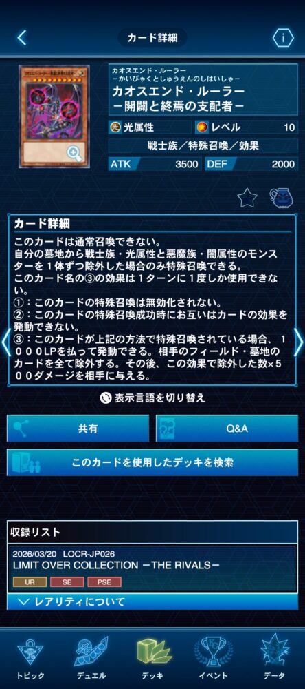 - LOCR-JP026『カオスエンド・ルーラー-開闢と終焉の支配者-』 ウルトラレア