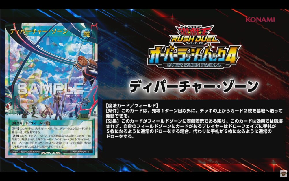 2026/4/11に発売される遊戯王ラッシュデュエルのスペシャルパック「オーバーラッシュパック4」収録の『ディパーチャー・ゾーン』が公開されました。