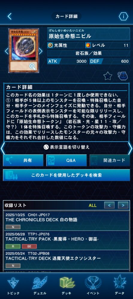 また、『原始生命態ニビル』を手札に加えられるので、相手の展開を大きく制限することも可能です。