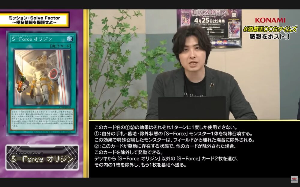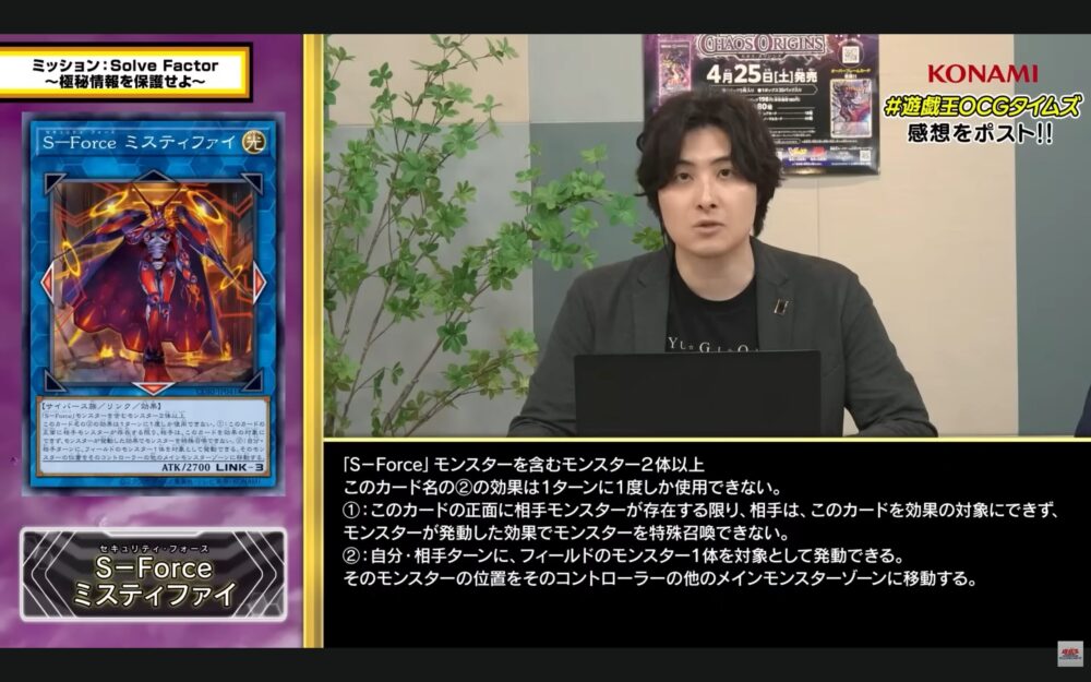 2026/4/25に発売される遊戯王OCGの基本パック「カオス・オリジンズ(CHAOS ORIGINS)」に収録される、「S-Force(セキュリティ・フォース)」関連カード5種が公開されました。