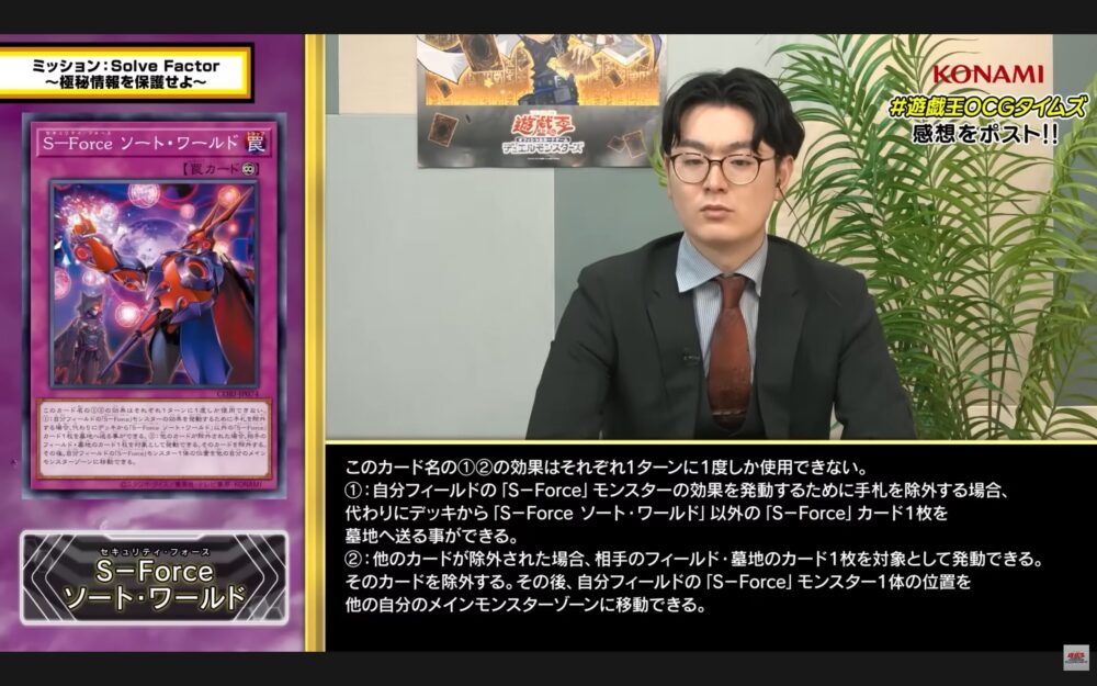 後、新たなサポートとして手札コストの軽減、除去、モンスターの位置の変更を行える優秀な永続罠カード『S-Force ソート・ワールド』も登場しています。