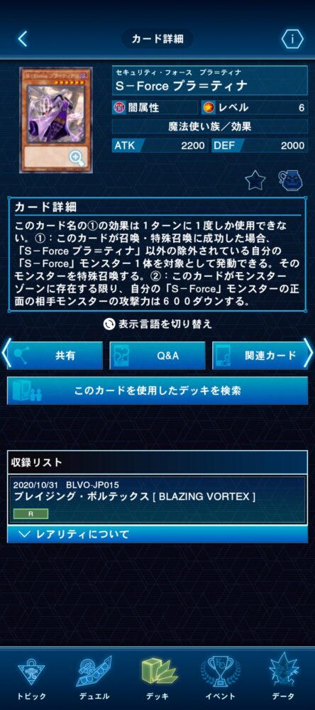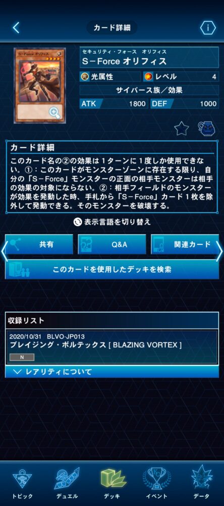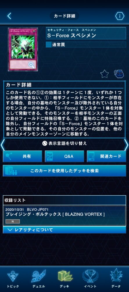 ある意味で初実装された「S-Force」の関連カードとも言えるのですが、悲しいことに今では2種のカードが規制されてしまっています。