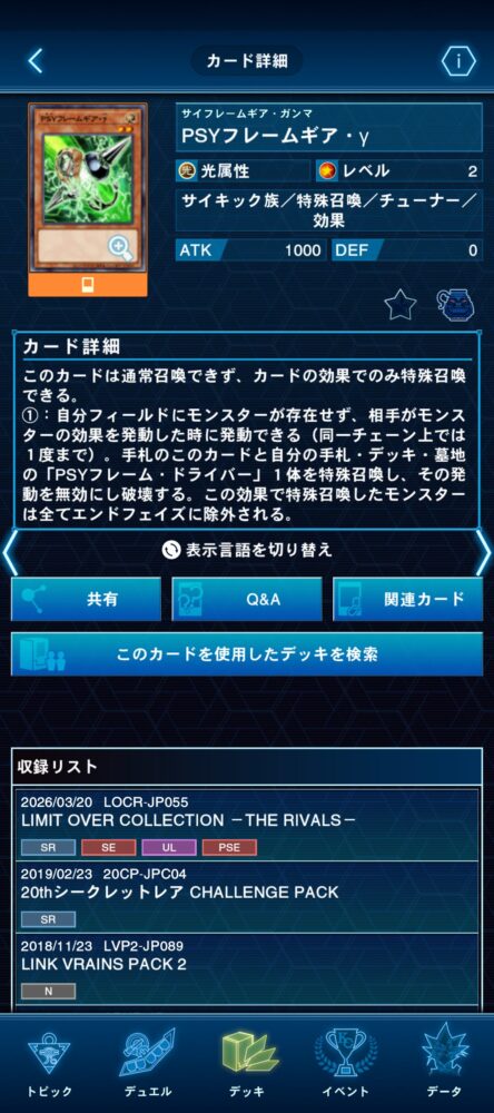 いずれにせよ、同じ世界観のテーマで格差が大きいと悲しいですし、近々「PSYフレーム」にも新規カードが配られて欲しいところです。