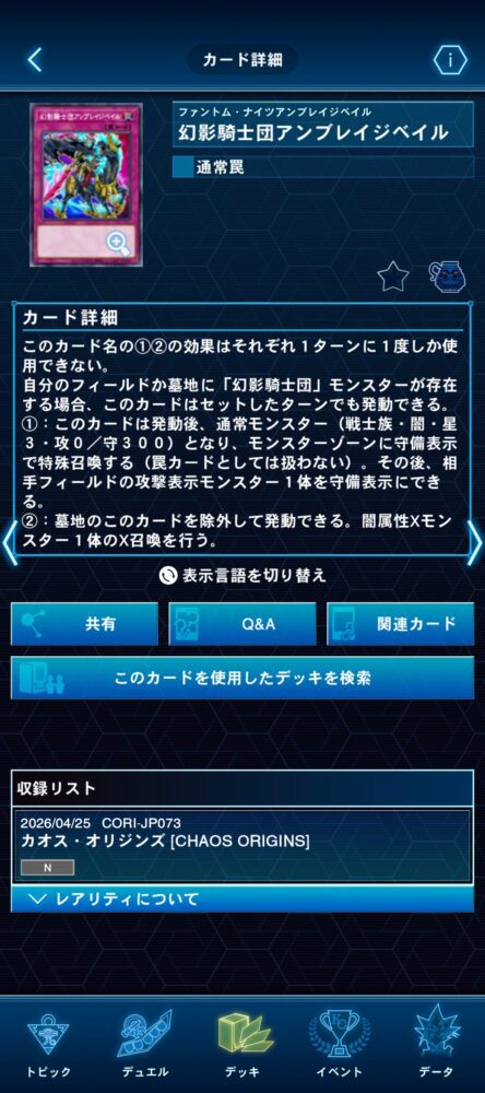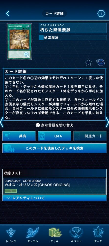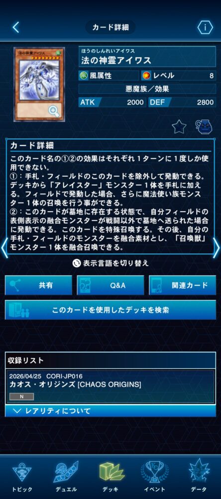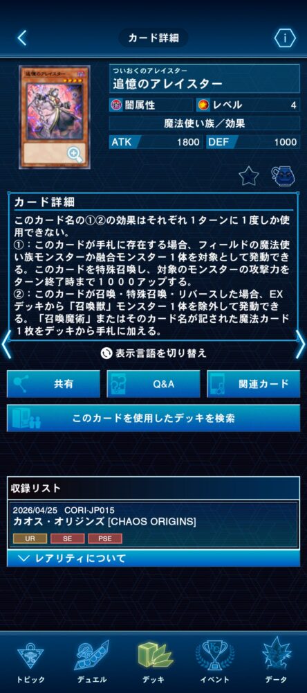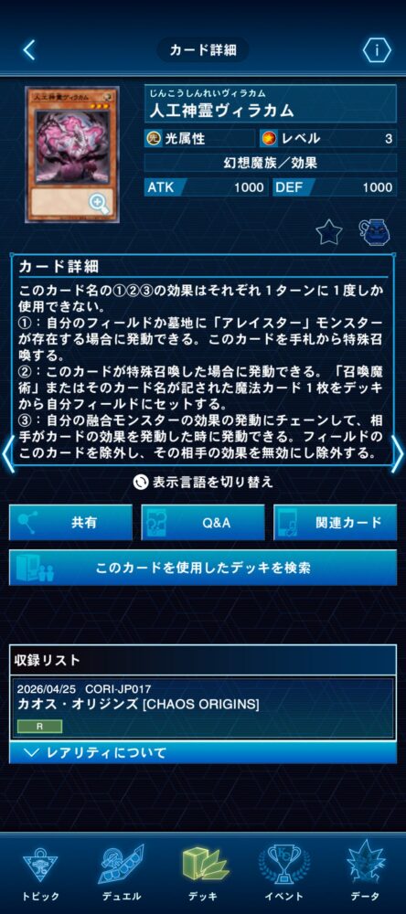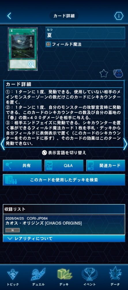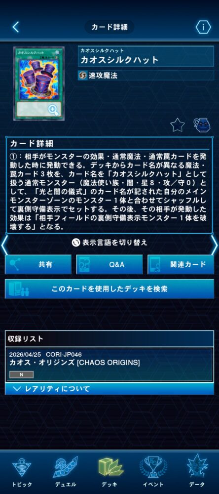 当記事では、2026/4/25に発売した遊戯王OCGの基本パック「カオス・オリジンズ(CHAOS ORIGINS)」の開封結果を報告したいと思います。