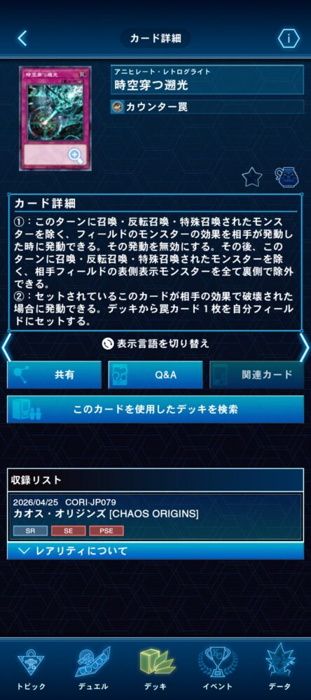 - 『時空穿つ遡光』 ※シークレットレア仕様あり ※プリズマティックシークレットレア仕様あり
