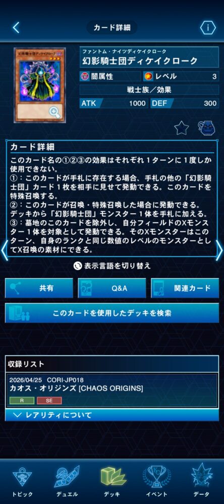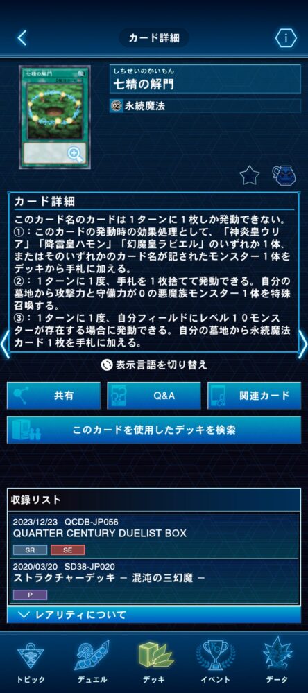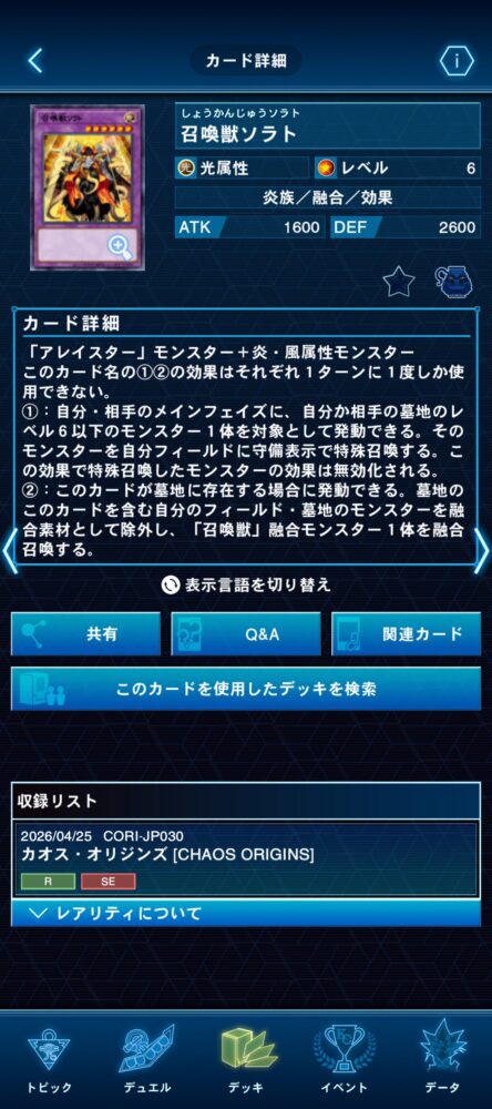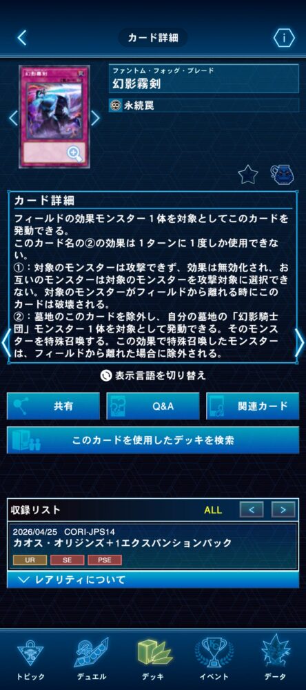 目的のカードについては、基本的にスーパーレア以上のカードにのみ言及します。