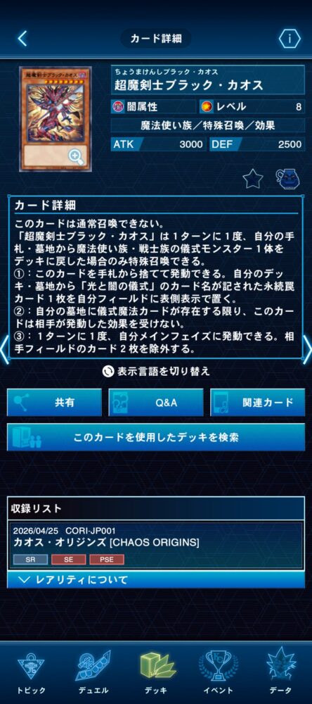 - 『超魔剣士ブラック・カオス』 ※シークレットレア仕様あり ※プリズマティックシークレットレア仕様あり