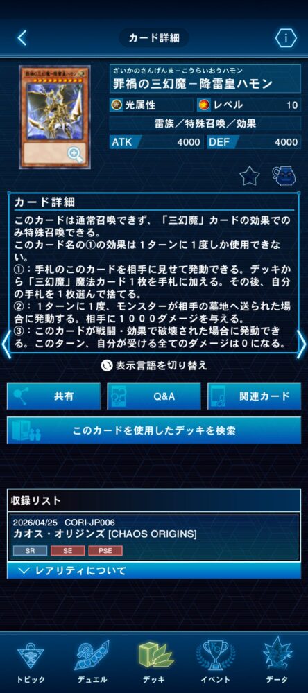 - 『罪禍の三幻魔-降雷皇ハモン』 ※シークレットレア仕様あり ※プリズマティックシークレットレア仕様あり