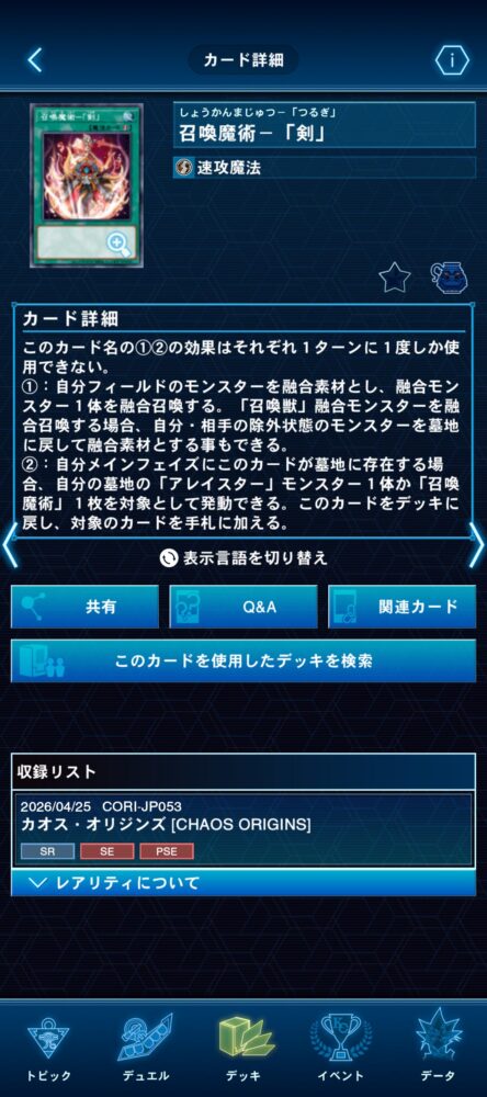 - 『召喚魔術-「剣」』 ※シークレットレア仕様あり ※プリズマティックシークレットレア仕様あり
