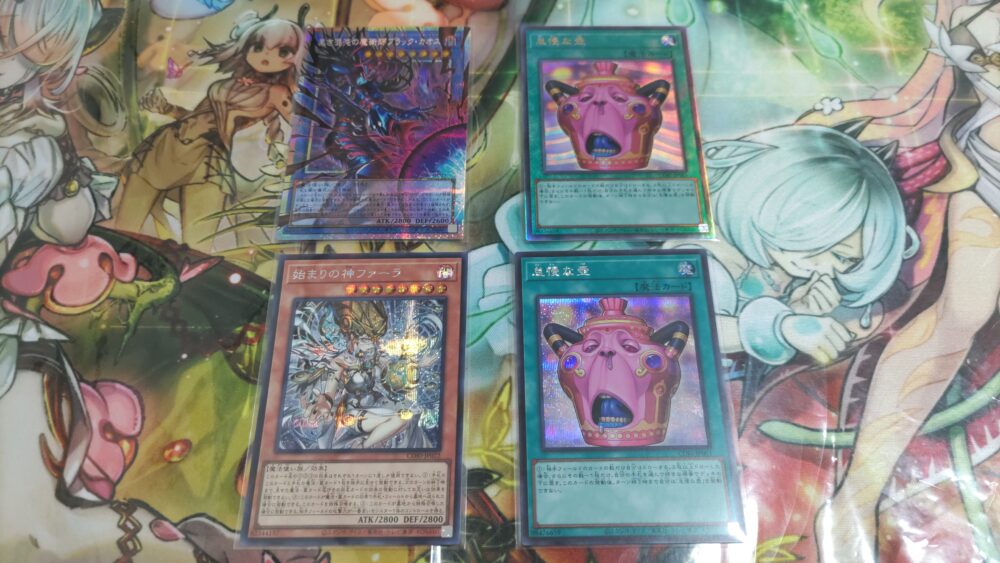 なんと、アルティメットレア枠のみでなくシークレットレア枠にまで『始まりの神ファーラ』と『怠慢な壺』が排出!!