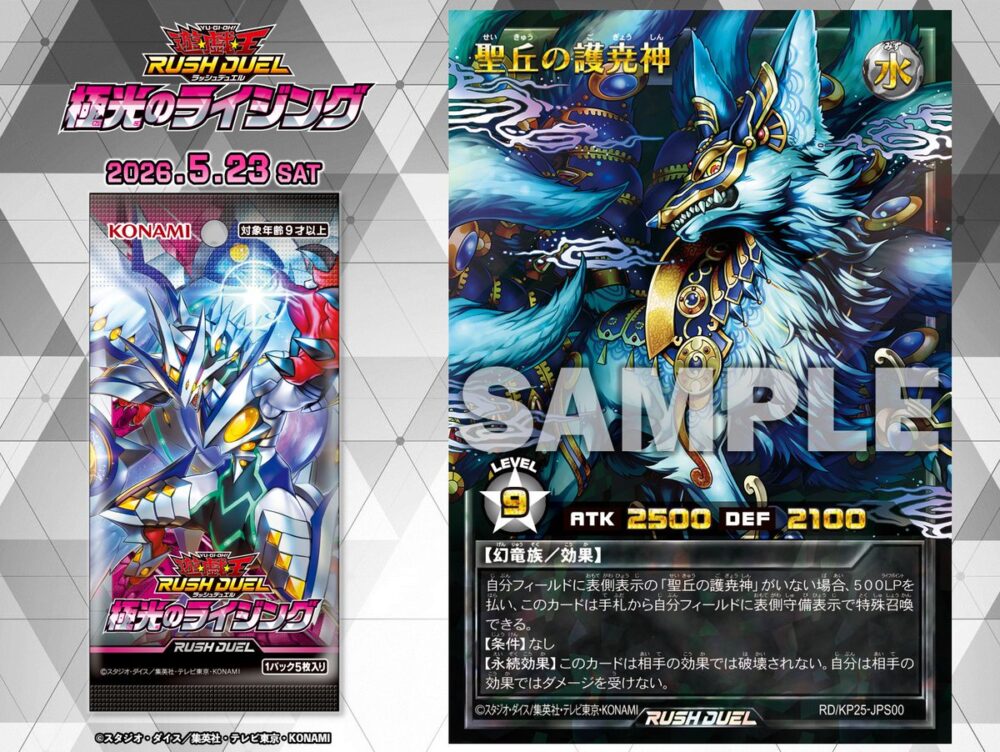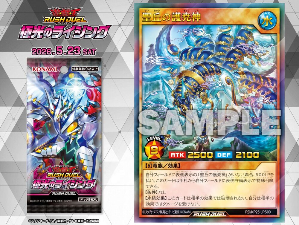 2026/5/23に発売される遊戯王ラッシュデュエルの基本パック「極光のライジング」収録の『聖丘の護尭神(せいきゅう ごぎょうしん)』が公開されました。