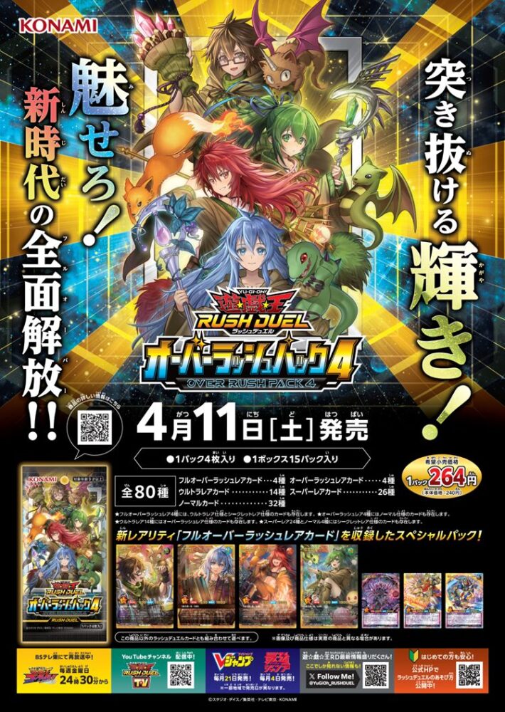 2026/4/11に発売される遊戯王ラッシュデュエルのスペシャルパック「オーバーラッシュパック4」の収録内容とレアリティが全て判明しました。