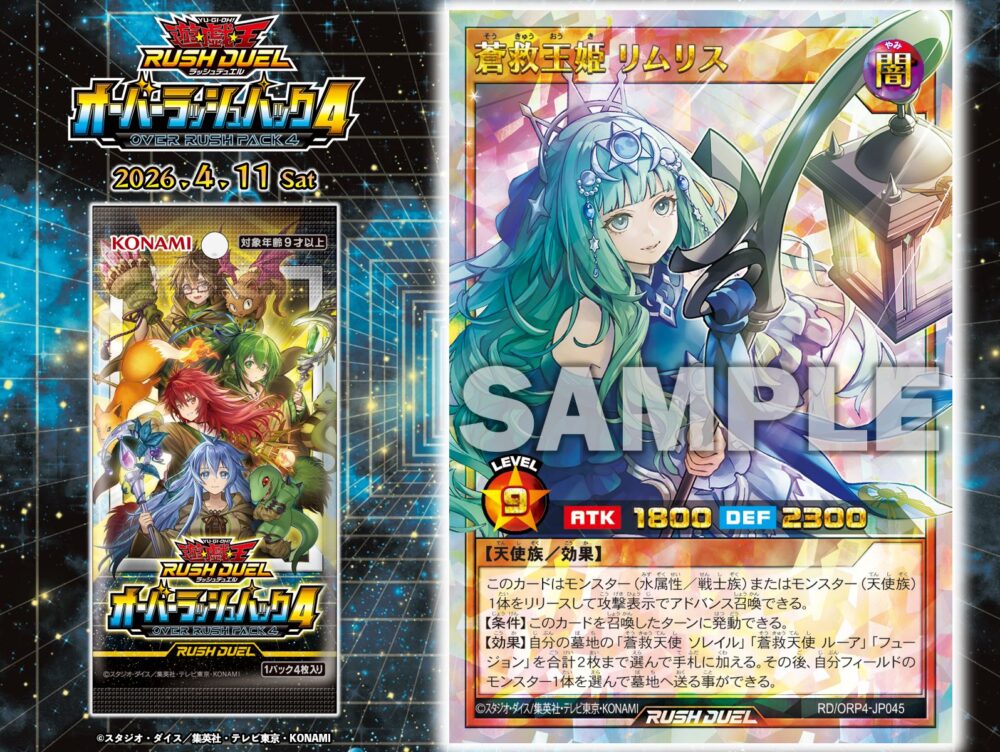 2026/4/11に発売の遊戯王ラッシュデュエルのスペシャルパック「オーバーラッシュパック4」に収録される『蒼救王姫 リムリス(そうきゅうおうき)』の設定画が公開されました。