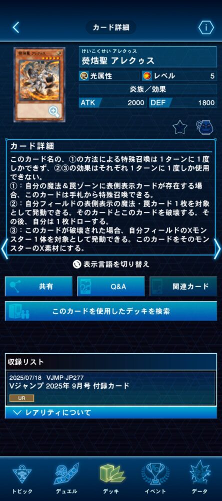 2026/4/21発売の「Vジャンプ(2026年6月号)」付属カード、黒陽竜イリオス(こくようりゅう)』の詳細なテキストが公開されました。