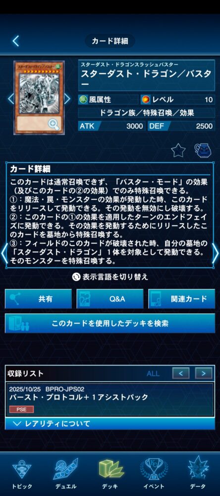 プリズマティックシークレットレア仕様でこそないものの、最新のフォーマットで『スターダスト・ドラゴン/バスター』が手に入るのも良いですね~。