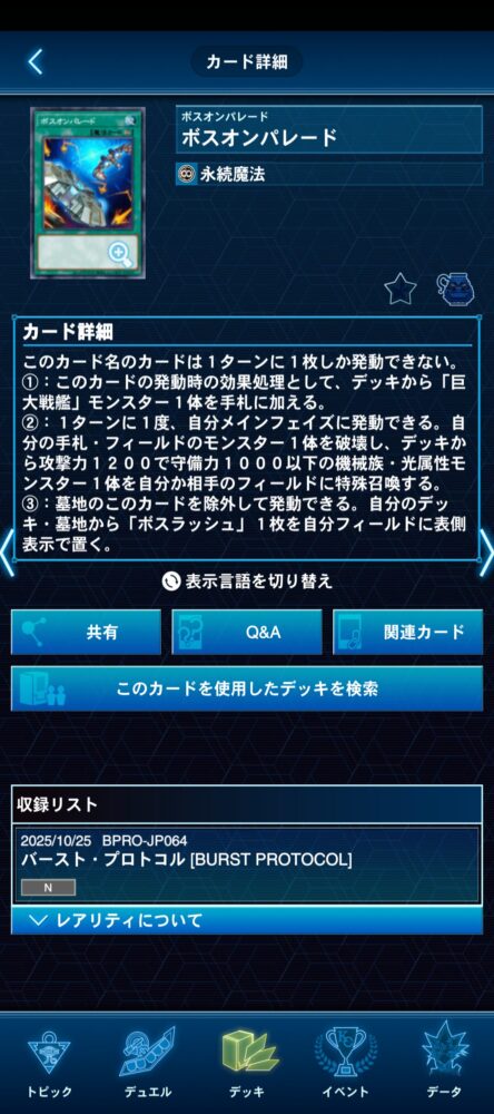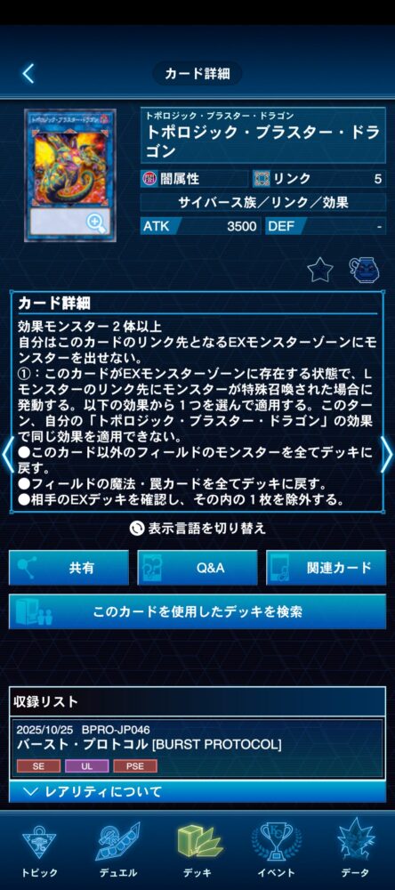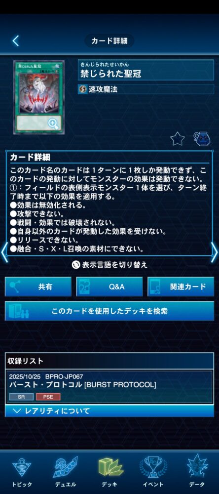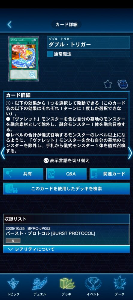 当記事では、2025/10/25に発売した遊戯王OCGの基本パック「バースト・プロトコル(BURST PROTOCOL)」の開封結果を報告したいと思います。