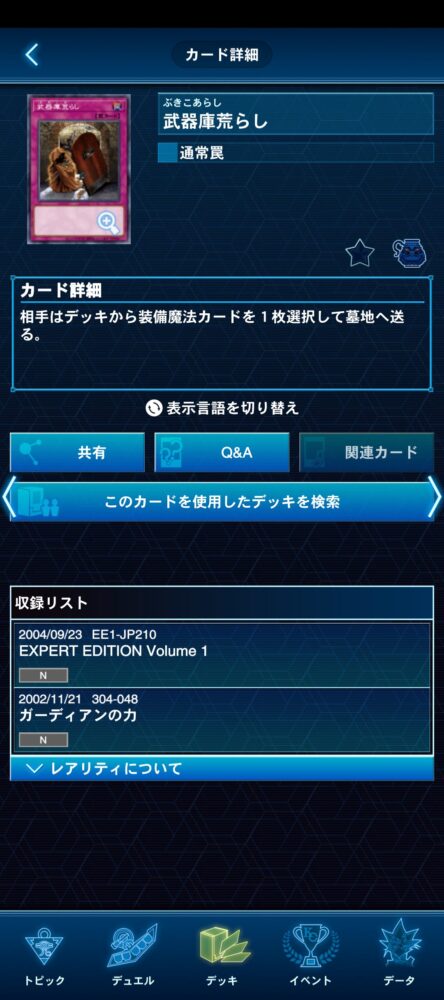 効果に関しても、『武器庫荒らし』と同じく装備魔法をデッキから墓地に送ると言うものですね。