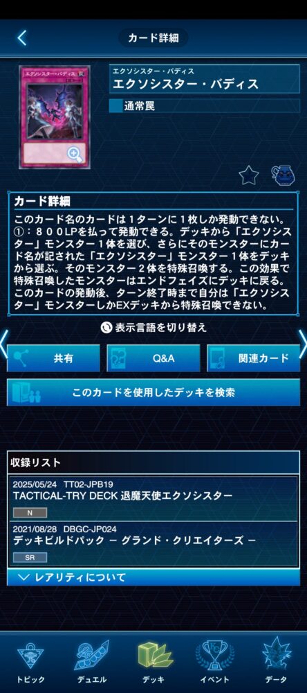 そして、②の効果は自分の「エクソシスター」モンスター1体を対象に発動し、そのモンスターのテキストに記された「エクソシスター」モンスターを召喚できます。