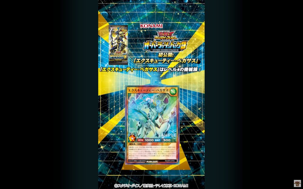 2025/10/18に発売される遊戯王ラッシュデュエルのスペシャルパック「オーバーラッシュパック3」収録の『エクスキューティー・ペガサス』が公開されました。