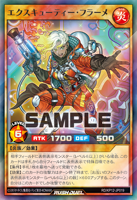 【効果】自分の墓地の「エクスキューティー・レイア」1体または「エクスキューティー・ライディング!」1枚を選んで手札に加える。この効果で「エクスキューティー・ライディング!」を選んだ場合、さらに相手フィールドの表側表示モンスター1体を選んでその攻撃力をターン終了時まで1800ダウンできる。