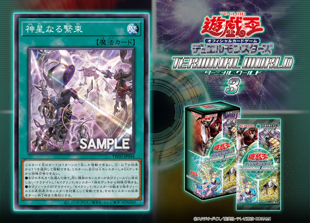 2025/11/22に発売される遊戯王OCGのコンセプトパック「ターミナルワールド 3(TERMINAL WORLD 3)」に収録される、『神星なる繋束(しんせい けいそく)』が公開されました。