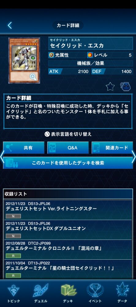 まずは1つ目ですが、手札コスト1枚でデッキから「テラナイト」モンスターか「セイクリッド」モンスター1体のリクルートを行うというもの。