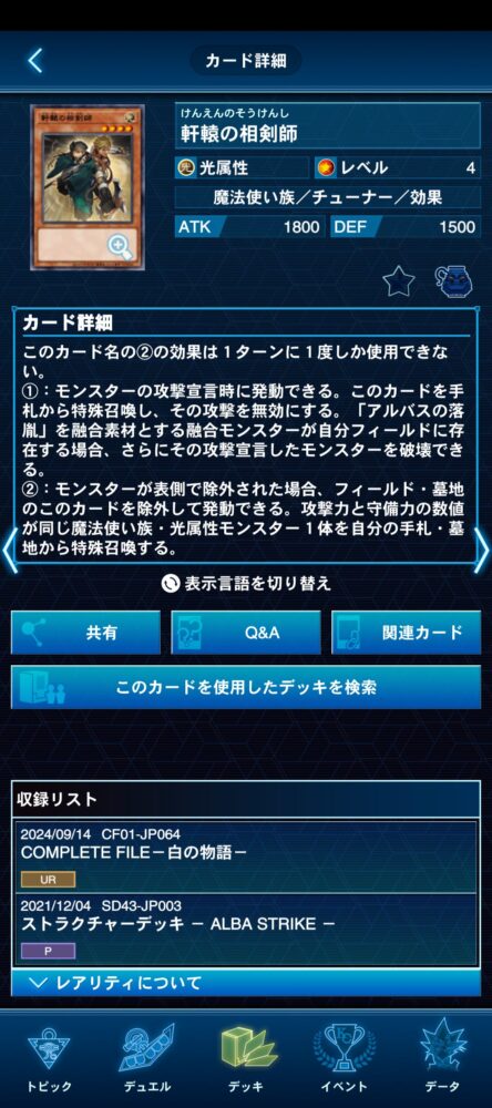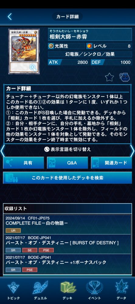 後、元々強い「相剣」ではありますが、このモンスターは『相剣大師-赤霄』以来となるレベル8のシンクロモンスターという意味でも期待ですね。