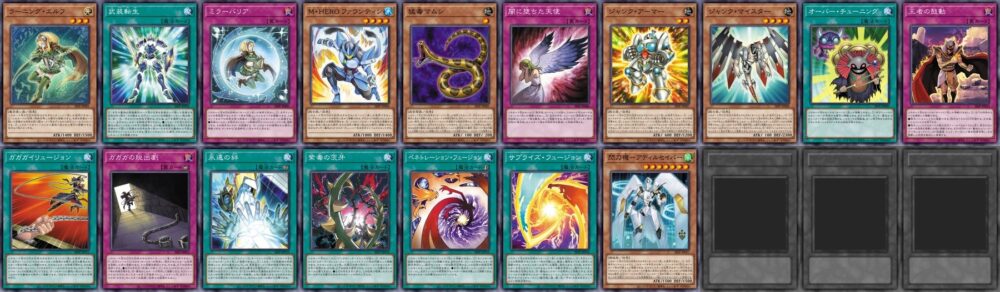 その収録テーマも多岐にわたり、「M・HERO(マスクドヒーロー)」、「堕天使(だてんし)」、「ジャンク」、「レッド・デーモン」、「ガガガ」、「エクシーズ」、「プレデター」、「フュージョン」、「閃刀(せんとう)」と、なかなかの人気どころが並んでいます。