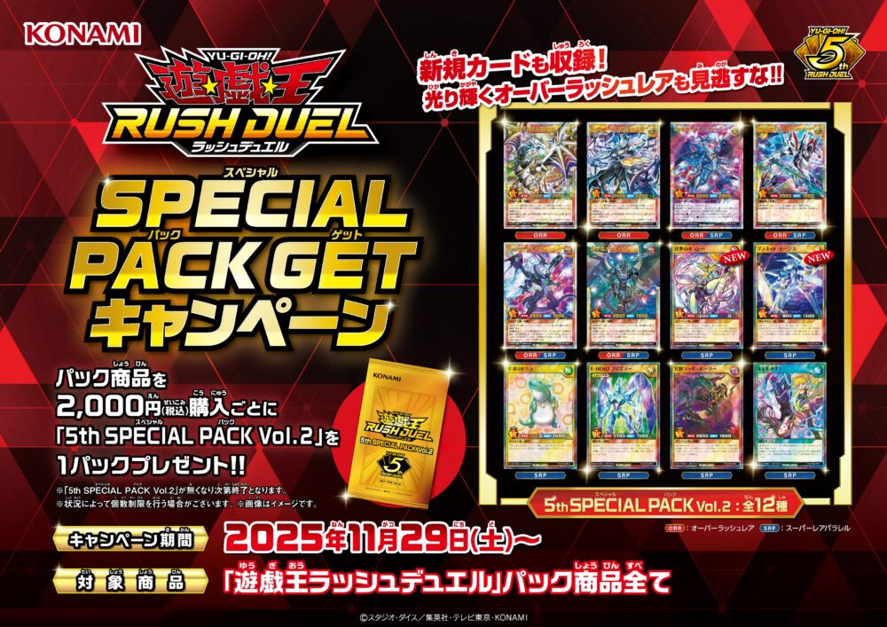 対象店舗はコチラ→https://www.konami.com/yugioh/rushduel/campaign/specialpack/