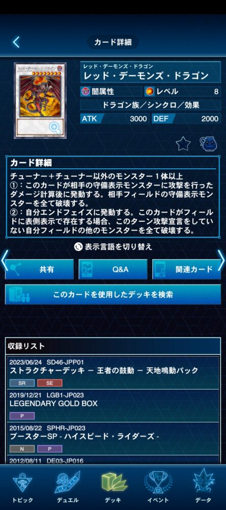 優秀なサーチに加え、『レッド・デーモンズ・ドラゴン』を大幅に強化して特殊召喚する効果が圧巻ですね。