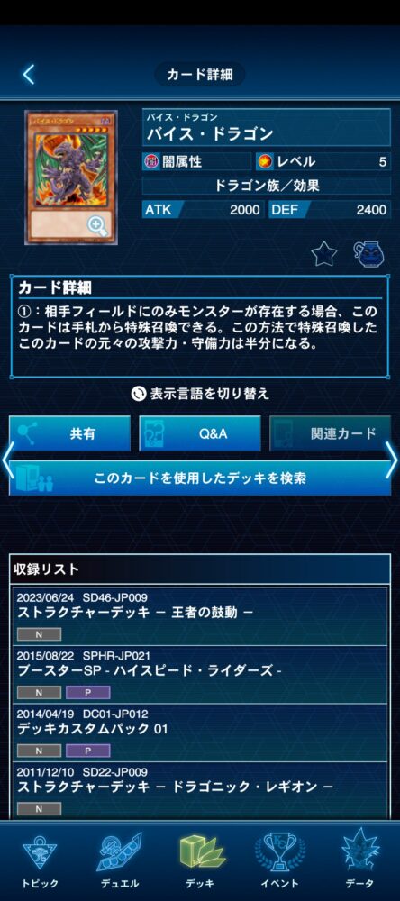 レベル5/闇属性/ドラゴン族/効果モンスター/攻2000/守2400