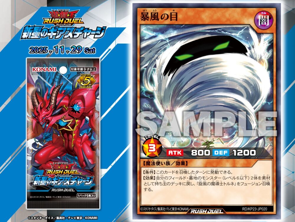 2025/11/29に発売される遊戯王ラッシュデュエルの基本パック「新星のギアスチャージ」収録の『暴風の目(ぼうふう め)』が公開されました。