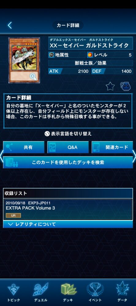 ただし、適用条件の「X-セイバー」モンスター10体以上はそれなりに厳しめ。