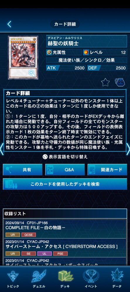同じ「フルルドリス」の派生シンクロモンスターである『赫聖の妖騎士』と同様、チューナー側にレベル指定があるシンクロモンスターでしたね。