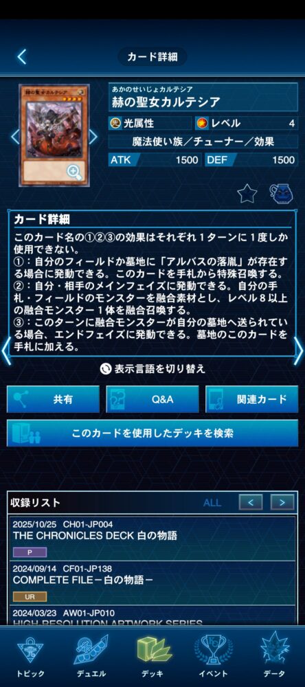 「エクレシア」2種や『赫の聖女カルテシア』、「フルルドリス」の派生モンスターたちは当然として、他にも多くのテーマのキーカードをサーチ可能ですね。